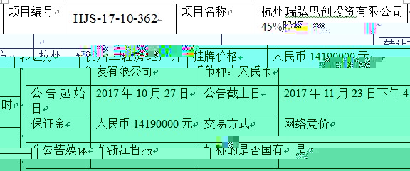 杭州瑞弘思創投資有限公司45%股權交易公告