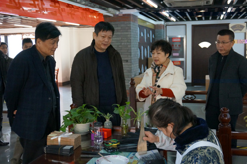 随後,張耕副市長一行來到王星記文化創意産業園參觀考察制扇車間、書畫車間和扇博物館,并與王星記的工藝美術大師們親切交流。當張耕副市長了解到王星記不斷推陳出新,研發按摩扇、與國際知名品牌DIOR合作定制禮品扇等營銷舉措使老字号不斷發揚光大時,他對王星記非遺技藝的保護及發展表示贊許。